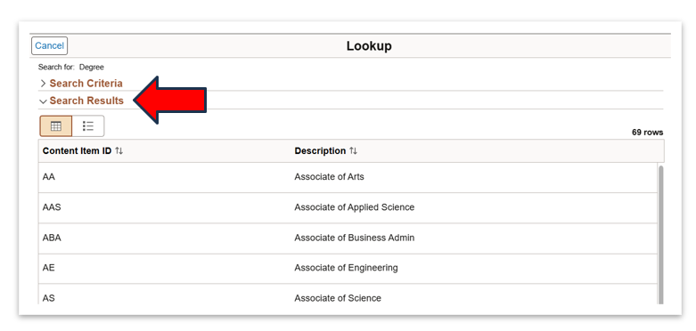 Note: This step is for degree type only, not your major.