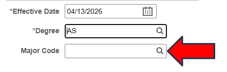 Click the magnifying glass next to 'Major Code'.